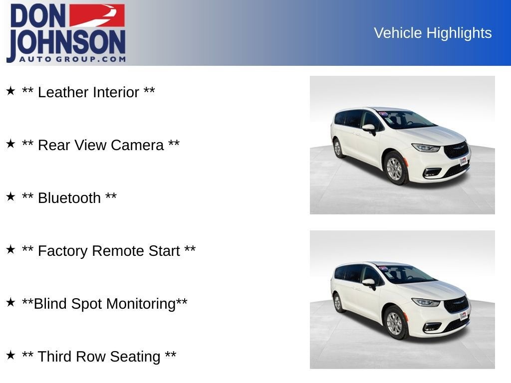 Bright White Clearcoat 2023 Chrysler Pacifica Touring L 4D Passenger Van FWD 3.6L V6 24V VVT 9-Speed 948TE Automatic